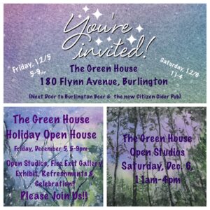 Come visit my art studio! I’m at The Green House, 180 Flynn Avenue in Burlington, VT. Just contact me by clicking this link. You can also find out more about other Green House artists by visiting our web page.